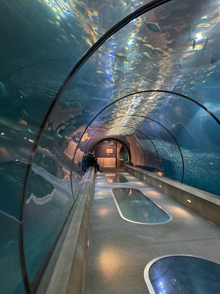 Then, we went to the fish and shark sanctuary, and we had the unique experience of observing these animals swimming above and below us in the tunnel.